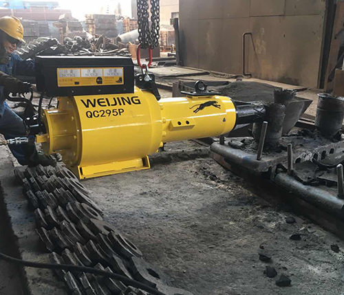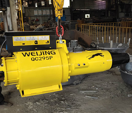 Degating hammer is a great machine specially designed to quickly break the risers from iron cast-ings, steel castings and steel alloy castings.Comparing to sledge hammer, flame cutting, the degating hammer doesn’t damage the castingbody. Meanwhile, it is absolutely safer, more quicker, more environment friendly. it can help thefoundries to reduce the degating cost and improve the degating efficiency.